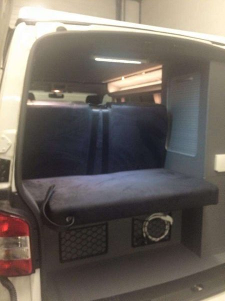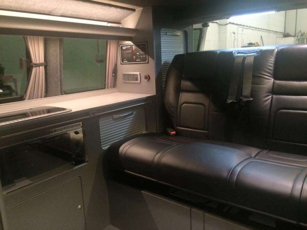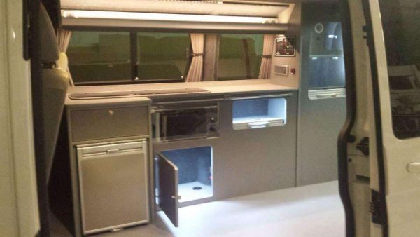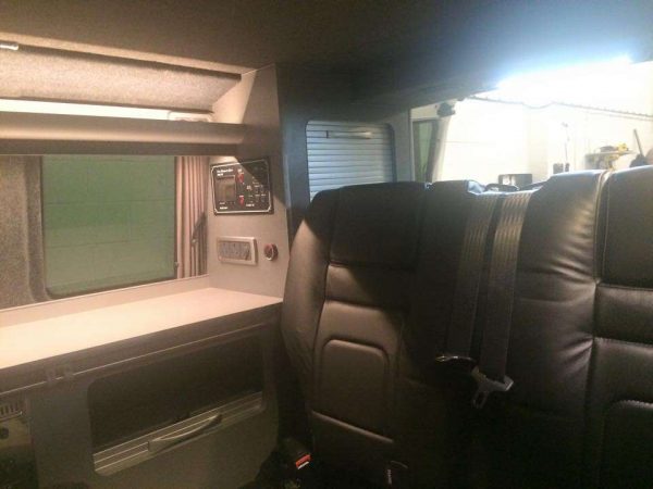 This swb camper conversion was for Jayne who works in our office and designed our website! The Superva furniture board used for this conversion was Puntinella and there’s a whole heap of extras too. It arrived with an Austop roof already fitted.