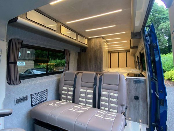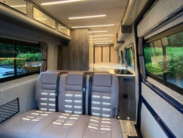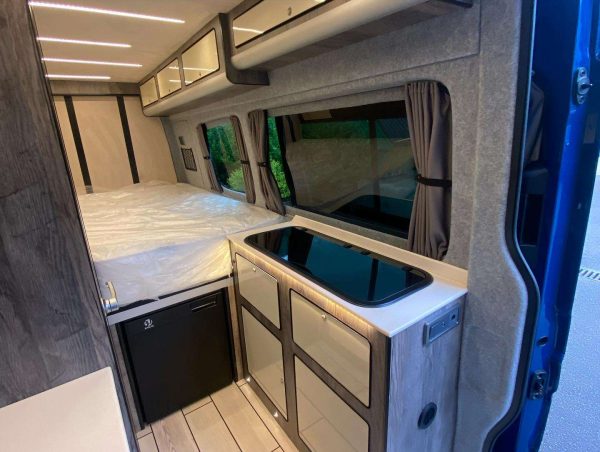 XLWB VW Crafter Full Camper Conversion. A stunning vehicle after the conversion process. Designed entirely to the customer’s specification.