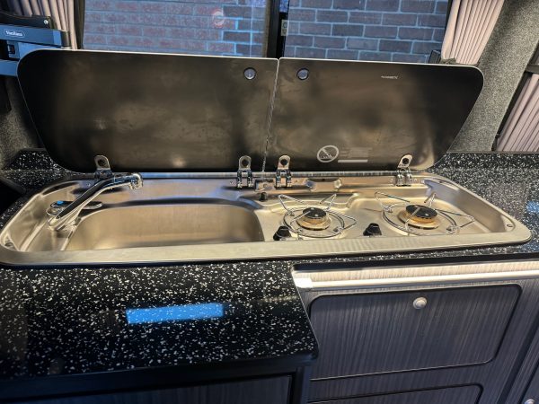 • Sink with cold water tap and two gas hobs