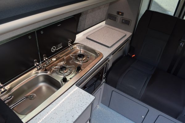 HomeGalleryVW T6 SWB Conversion inc Oven and Grill VW T6 SWB Conversion inc Oven and Grill T6 SWB Conversion. Puntinella units, white sparkle worktop, Reimo roof, RIB bed in Simora trim. Oven and Grill. Gallery